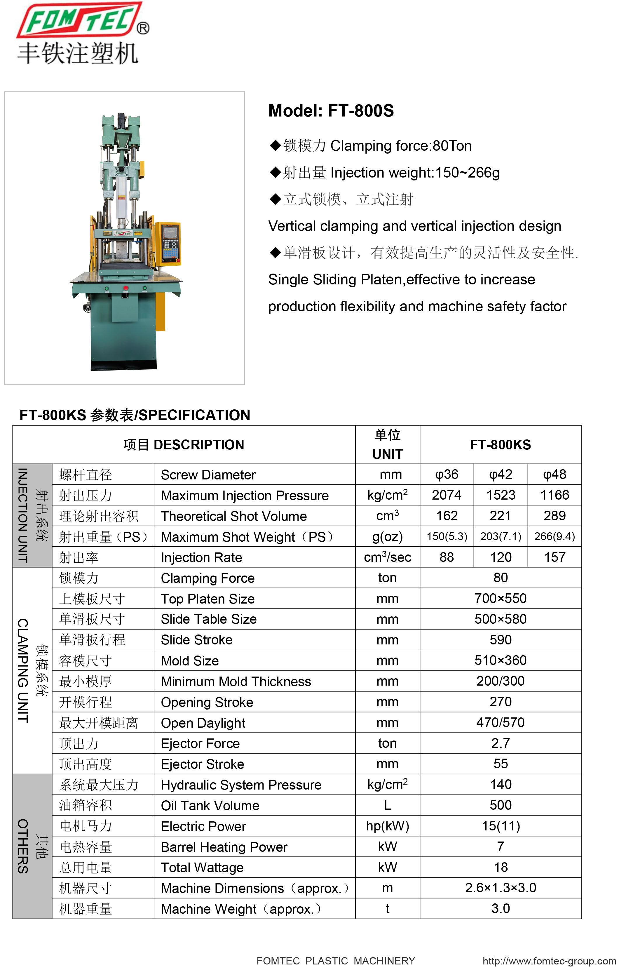 產(chǎn)品名稱:FT-S單滑板注塑機系列