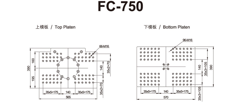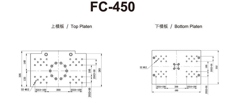 2. 鎖模機構采用C-型機架、無機柱設計,工作臺三面空間開放,鑲嵌件及成品取放容易。