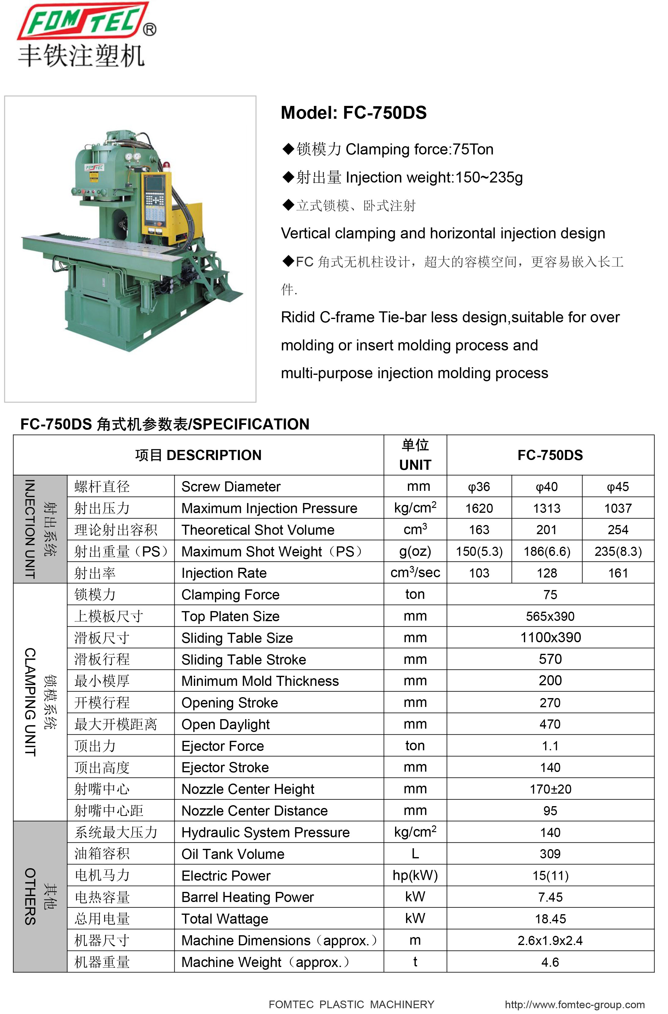 規格表 / Specification         鎖模力/Clamp Force (T)