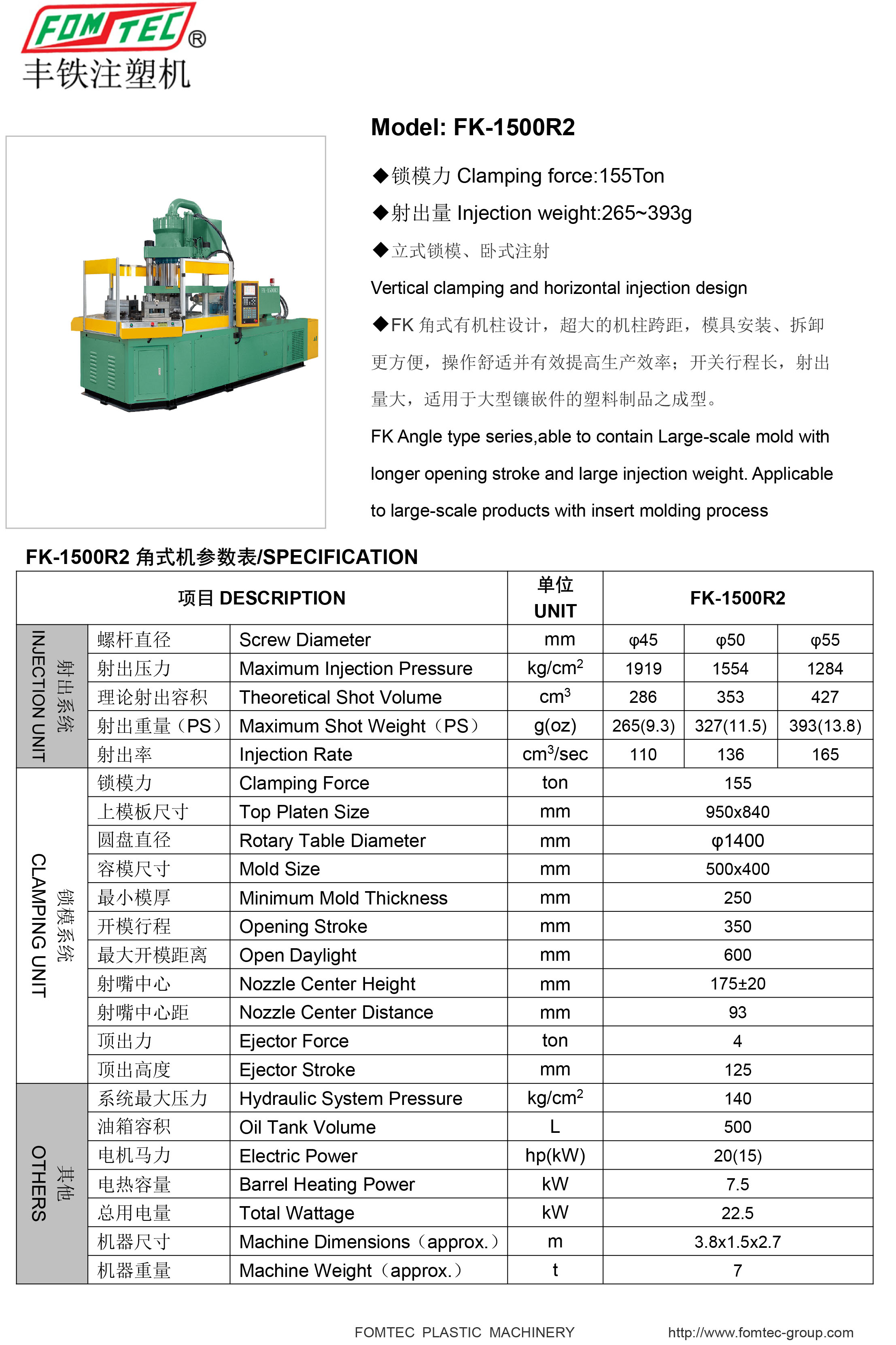 產品名稱:FK-R2角式轉盤注塑機系列