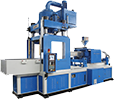 1、注射裝置和鎖模裝置處于同一垂直中心線上,且模具是沿上下方向開閉。其占地面積只有臥式機的約一半,因此,換算成占地面積生產性約有二倍左右。